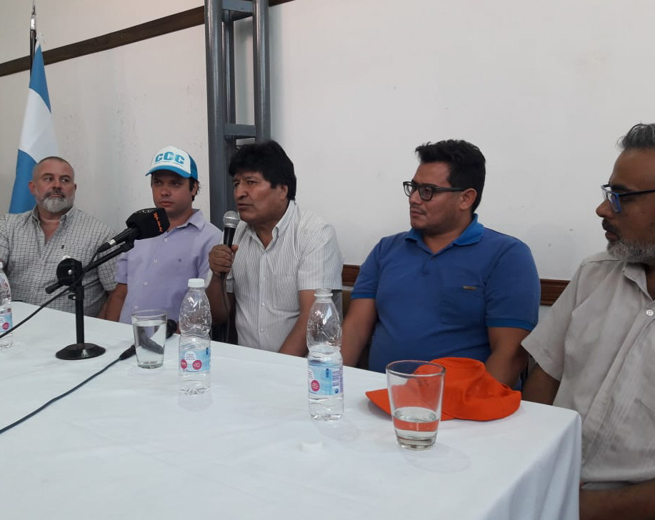 Tras finalizar el acto político, Morales mantuvo una reunión con dirigentes gremiales locales. El encuentro se dio en la sede de la Asociación Docentes, Investigadores y Creadores de la Universidad Nacional de San Juan (Adicus). Tras ese mitin tuvo un breve contacto con la prensa. Ante la pregunta de si se arrepiente de algo de su gobierno y de lo que ocurrió en noviembre, cuando tuvo que dejar el país, dijo "no me arrepiento de nada. Ganamos en primera vuelta y vamos a seguir ganando".