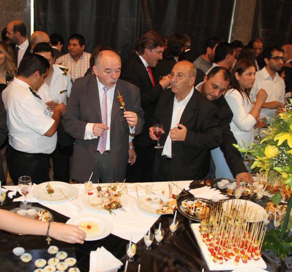 Mientras se daba el traspaso de mando en la sala principal del Auditorio, en el foyer preparaban las mesas y las copas para realizar el brindis final de la jornada de celebración. El toque distintivo estuvo dado en la decoración de las mesas porque los encargados del catering eligieron íconos de los paisajes de la provincia para que estén presentes en los centros de mesa. Entre los símbolos sanjuaninos que representaron de maneras ingeniosas estuvo un guanaco, el Sol, el agua y un deporte náutico.