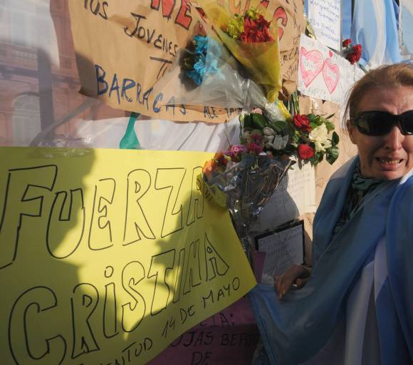 Entremezclados entre cientos de argentinos, también se divisaba la presencia de extranjeros, entre ellos Celia Araujo, una ciudadana brasileña que vive en Río de Janeiro y es la primera vez que visita la Argentina, se aproximó al enrejado de la Casa rosada para dejar una ofrenda de flores.