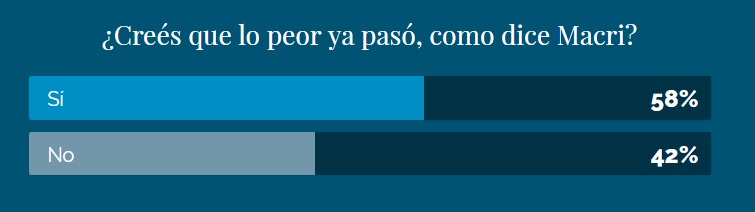 DIARIO DE CUYO realizó un sondeo en el que los sanjuaninos se mostraron en sintonía con el presidente. De 2346 lectores que participaron, el 58% coincidió con el pensamiento del primer mandatario, mientras que el 42% restante cree que la situación puede empeorar.