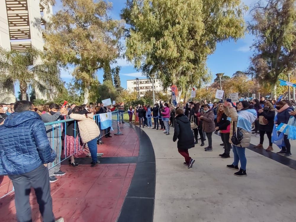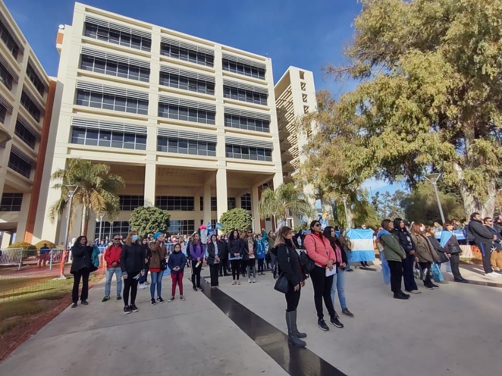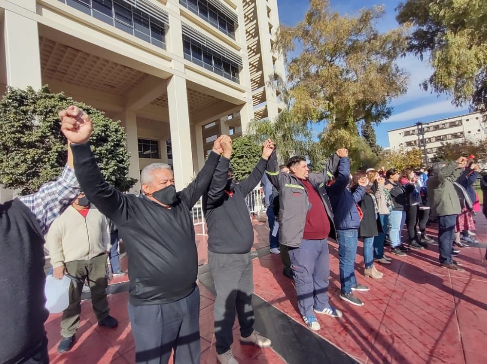 Hoy analizarán lo propuesto por el Gobierno provincial. Estatales no docentes que trabajan en el edificio se plegaron al reclamo.
