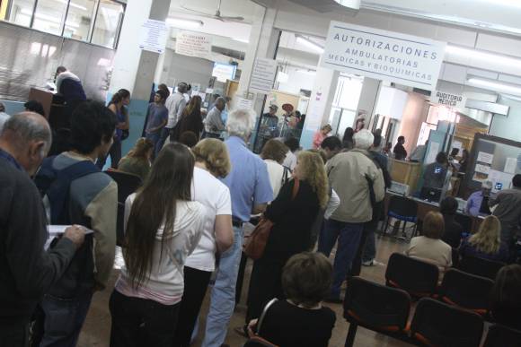Por un paro de 7 a 10 que se realizó ayer en reclamo salarial, la Obra Social Provincia tuvo resentida su atención a primera hora de la mañana y luego se normalizó con algunas colas (foto). Un grupo de empleados, nucleados en ATE, pide la incorporación de dos ítems -extensión horaria y jornal de campaña- al último aumento salarial.