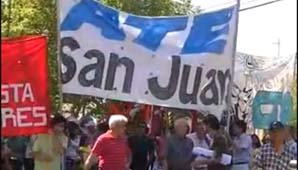 San Juan, 20 de noviembre.- Esta mañana, frente al Centro Cívico comenzó la concentración de los gremios, agrupaciones y sindicatos que adhirieron a la convocatoria de las CGT y CTA disidentes. Posteriormente se dirigieron por avenida Libertador hacia Casa de Gobierno, en donde ATE, uno de los sindicatos que encabezaba la movilización entregó un petitorio.