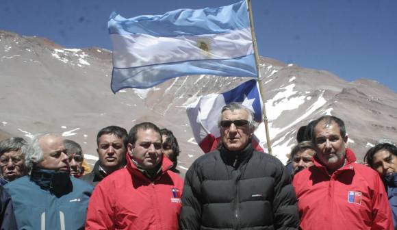 Durante el acto, el que no dejó de hacer flamear las banderas de ambos países fue el popular “Coco” Mallea, un antiguo trabajador de Vialidad y que está siempre presente para la apertura del paso.
