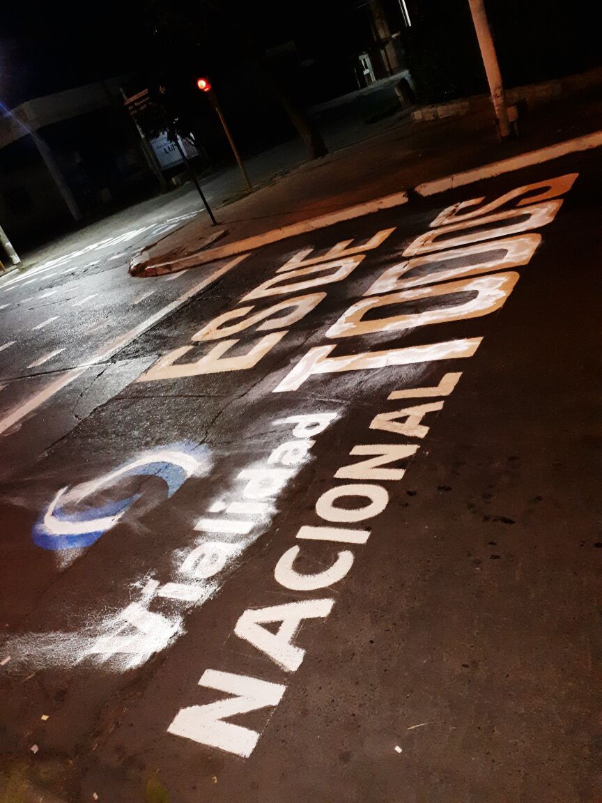 Hoy, en la puerta del edificio de Vialidad en la provincia aparecieron dos pintadas manifestándose en contra de una posible privatización. "No se toca" y "Vialidad Nacional es de todos", rezan los carteles escritos en la calle.