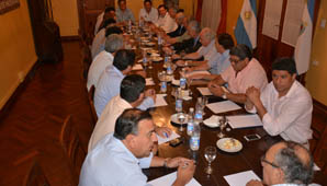 San Juan, 14 de marzo.- El gobernador mantuvo esta tarde una reunión con los 19 intendentes con los que habló de los problemas presentados por las lluvias, las distintas obras de pavimento que necesitan y la ampliación del tercer programa de pavimento urbano.
