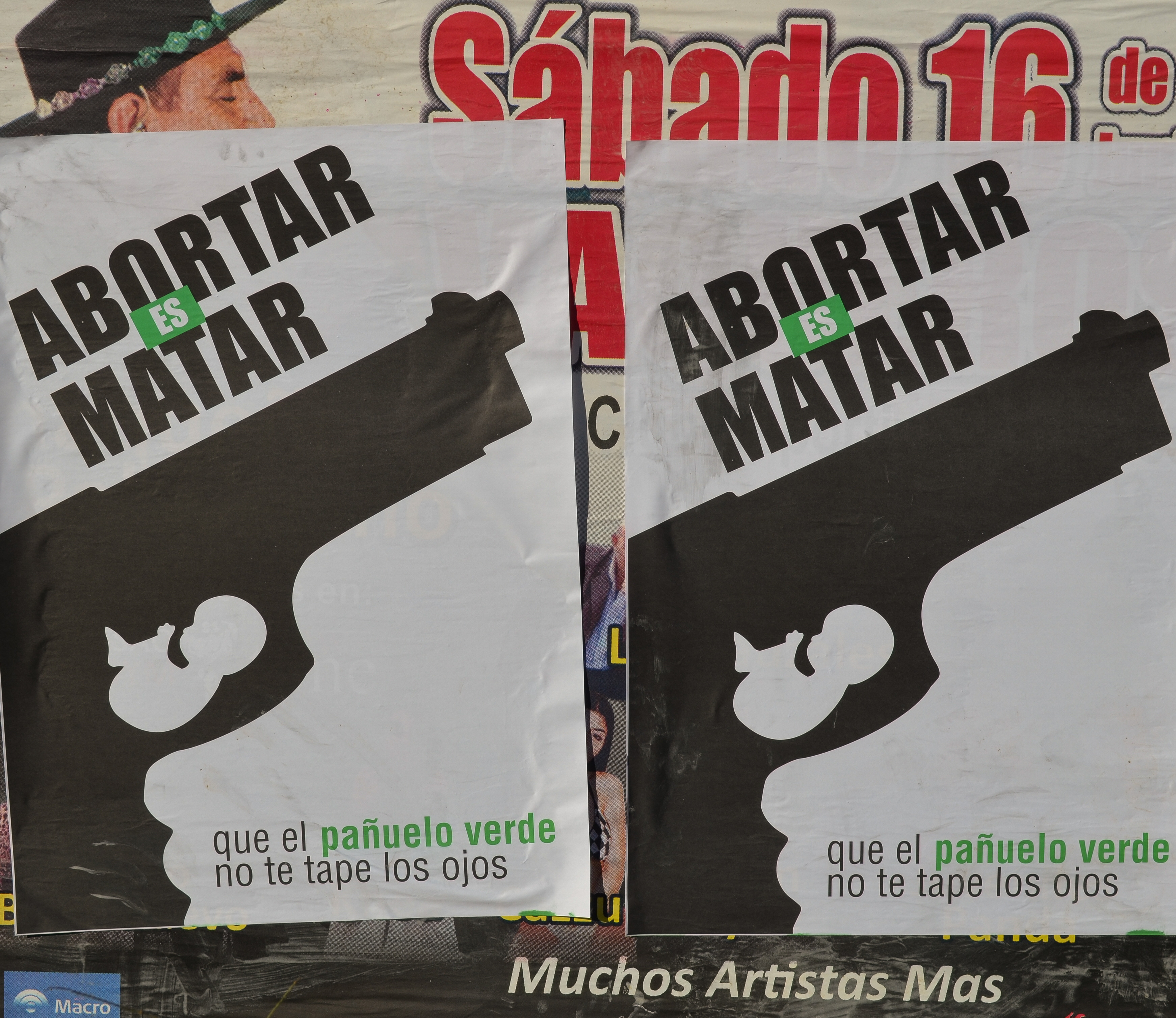 El centro de la ciudad de Salta amaneció ayer empapelado con afiches en contra del aborto, mientras un periodista local aseguró que diputados nacionales salteños recibieron amenazas para forzarlos a no votar a favor de la legalización. "Abortar es matar. Que el pañuelo verde no te tape los ojos", dicen los afiches que desde ayer se pueden ver en postes y paredes de distintos puntos del centro salteño, ilustrados con una pistola y un feto.