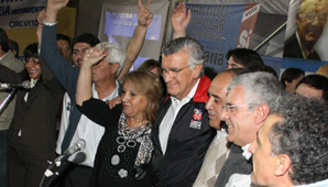 San Juan, 23 de septiembre.- Esta noche, en un multitudinario acto en el Barrio Aramburu, el Frente para la Victoria proclamó la candidatura Ana María López de Herrera a intendente de Rivadavia.