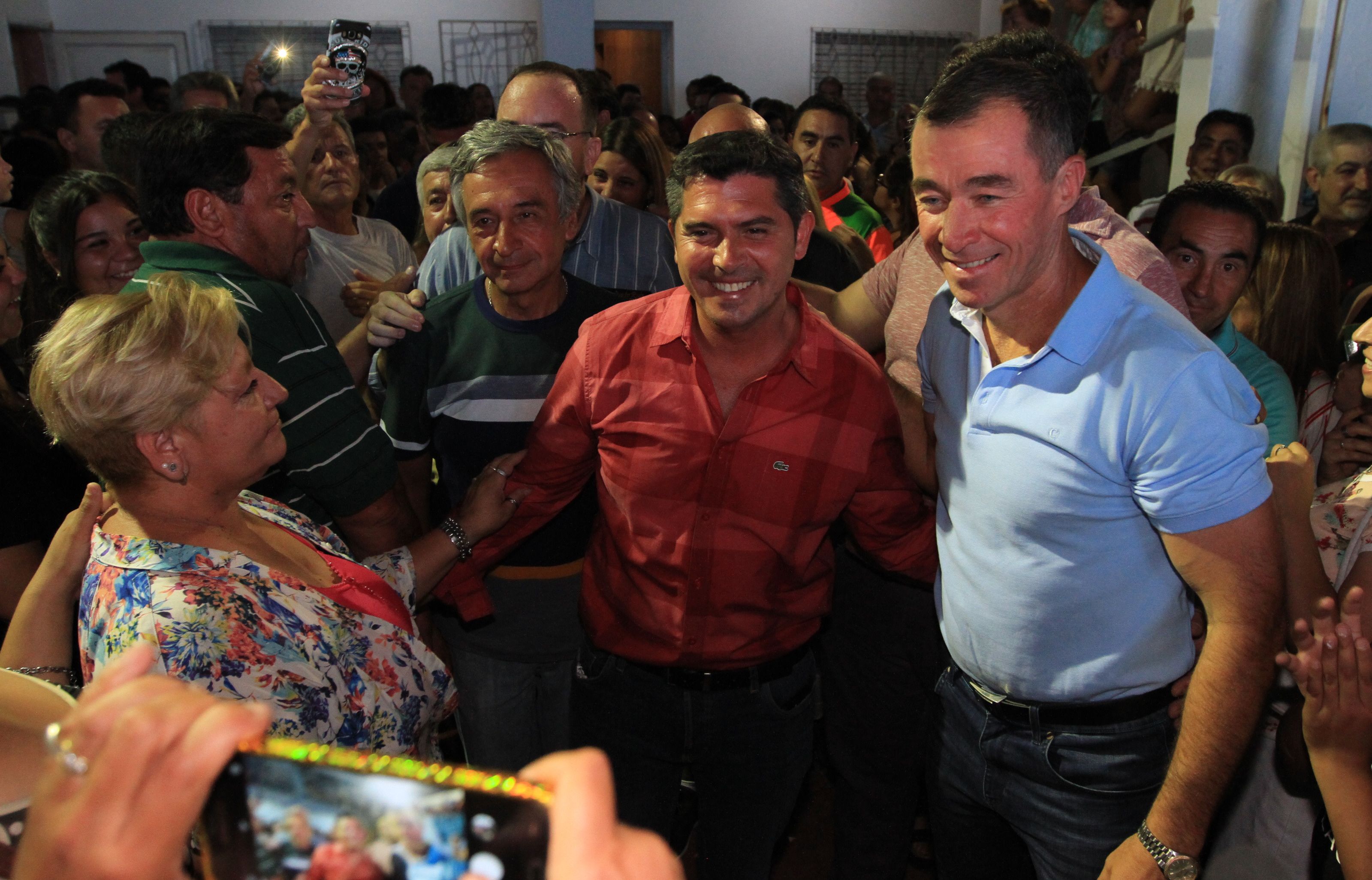 En un salón de Producción y Trabajo de avenida del Libertador, en Rivadavia (foto), el actual intendente Fabián Martín lanzó su candidatura a la reelección departamental. Estuvieron presentes los máximos referentes de ese partido, entre ellos Orrego y Basualdo. Como la invitación salió de las filas del basualdismo, no había en el lugar ningún socio de Con Vos, como el PRO, por ejemplo. En su discurso, Martín dijo que "en tres años hemos transformado nuestro departamento. Construimos el Parque de Rivadavia como el ícono de nuestro departamento. El parque es visitado por muchas personas de otros departamentos". El jefe comunal también se acordó de la administración macrista, al decir que "no han sido años fáciles. Se han cometido muchos errores. Hemos sabido estabilizar económicamente nuestro municipio, con servicios de excelencia". En el final de su discurso, Martín aseguró que "necesitamos arraigar nuestro proyecto, por eso venimos a decirles a mis amigos, que junto a Sergio Miodowsky vamos a ser precandidatos en Rivadavia. Sergio como candidato a diputado y quien les habla como candidato a intendente".