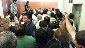 Al no llegar a un acuerdo entre las partes, Alcoba decidió posponer el encuentro por lo que los empleados siguen agolpados en el edificio.