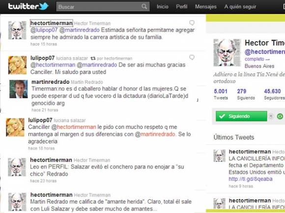 Pero hasta "Luli" salió a defenderse: "Canciller @hectortimerman le pido con mucho respeto que me mantenga al margen d sus diferencias con @martinredrado. Se lo agradecería".