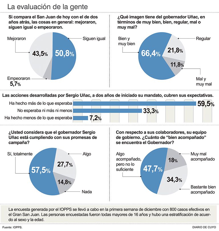 La consulta de DIARIO DE CUYO se hizo a los principales referentes de sectores clave de la provincia, como la minería, la industria, el vitivinícola, el comercio, la construcción y los abogados. Áreas en las que las decisiones de Uñac repercuten directamente. Mientras que la opinión de un sector de la sociedad es el resultado de una encuesta que hizo el Instituto de Opinión Pública y Proyectos Sociales (IOPPS) hace unos días para este diario (ver infografía).