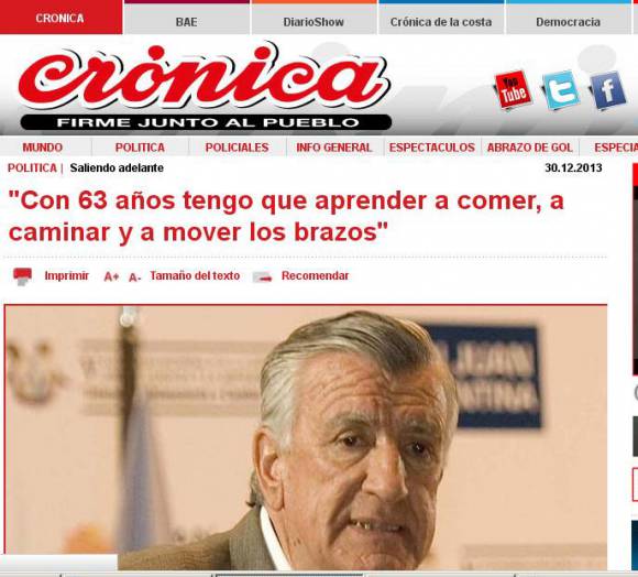 Luego de que el gobernador José Luis Gioja, internado en el Hospital Italiano de Buenos Aires desde el 24 de noviembre, diera su primera entrevista tras el accidente en el helicóptero a DIARIO DE CUYO, distintos medios de comunicación nacionales se hicieron eco de la noticia destacando la oportunidad del contacto periodístico.