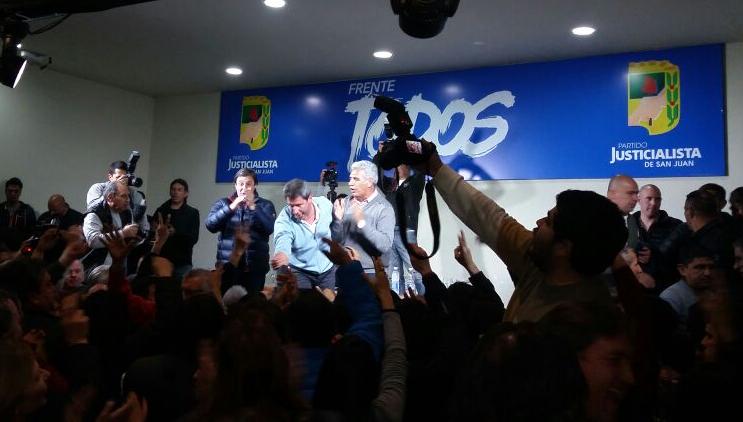 "Les agradezco profundamente a todos los militantes que han participado en el proceso de campaña y en el día de hoy fundamentalmente. Estoy celebrando que la sociedad nos ha habilitado a ser candidatos y que a partir de ahora vamos a doblar el esfuerzo. Vamos a defender a muerte este proyecto porque sabemos qué necesitan nuestros productos para ser competitivos, sabemos el mal que le hace a la industria vitivinícola que importen vinos, sabemos adónde llega el tren, cómo vamos a trabajar para que San Juan crezca y se desarrolle aún más", señaló.