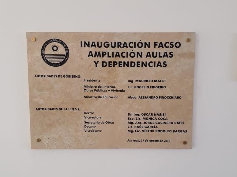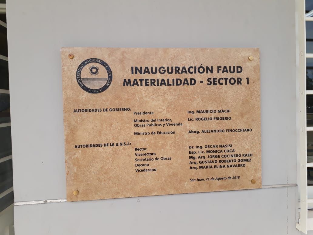 La clara distancia que han tomado las universidades públicas del país con el Gobierno nacional, que en San Juan es muy fuerte, suma en las últimas horas un nuevo capítulo. Dos obras recientemente inauguradas en la Universidad Nacional de San Juan (UNSJ), que tenían placas con el nombre del presidente Mauricio Macri, fueron sacadas.