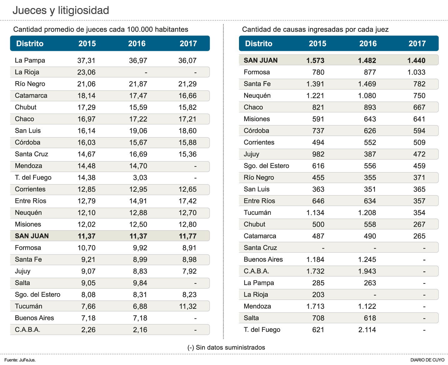 Los únicos distritos que en principio están por arriba de San Juan en ese rubro son la Ciudad Autónoma de Buenos Aires, Mendoza y Tierra del Fuego. Los Poder Judiciales de las tres hasta el momento no han dado a conocer sus datos estadísticos (Ver infografía).