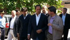 San Juan 26 de octubre.- Minutos después de las 10:30 el presidente del PJ Nacional y Gobernador de la provincia de Buenos Aires, Daniel Scioli, arribó a San Juan en vuelo privado. Lo acompañaron el titular del ANSES Diego Bossio y un médico infectólogo convocado especialmente para realizar una interconsulta con los médicos ocales para estudiar el cuadro de salud de Gioja. Luego de saludar a familiares y poder ver el mandatario, Scioli fue claro al manifestar que “no vengo a hacer política, vengo a ver un amigo”.