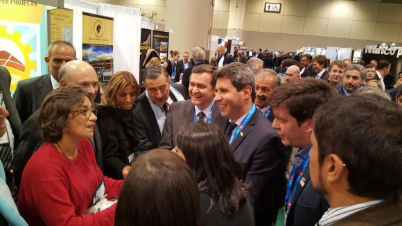 San Juan.- La comitiva sanjuanina, encabezada por el gobernador sanjuanino Sergio Uñac y el ministro de Minería de la provincia, Alberto Hensel, participó de la apertura de la tradicional feria minera que se realiza cada año en Canadá. Uñac destacó la presencia de empresarios mineros sanjuaninos y de las autoridades de los gobiernos de La Rioja y Catamarca. Además dijo que entre los inversores mineros, han caído muy bien las decisiones del Gobierno de Mauricio Macri de liberar el cepo cambiario y permitir la importación de maquinaria.