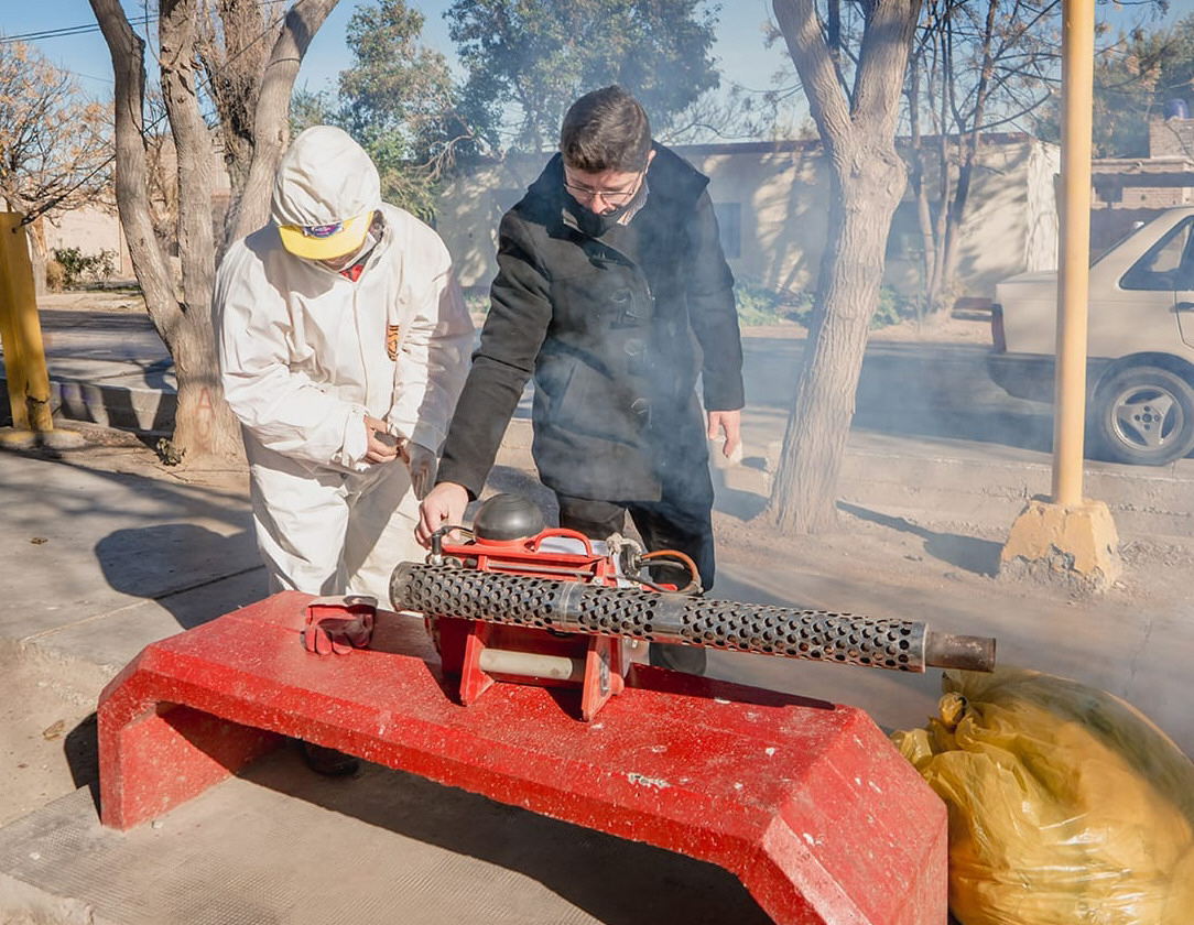 Un empleado municipal santaluceño tuvo problemas con la fumigadora y el que se acercó para darle una mano fue el intendente Juan José Orrego. Aunque le puso todas las pilas, dicen que el jefe comunal hizo más daño que arreglos.