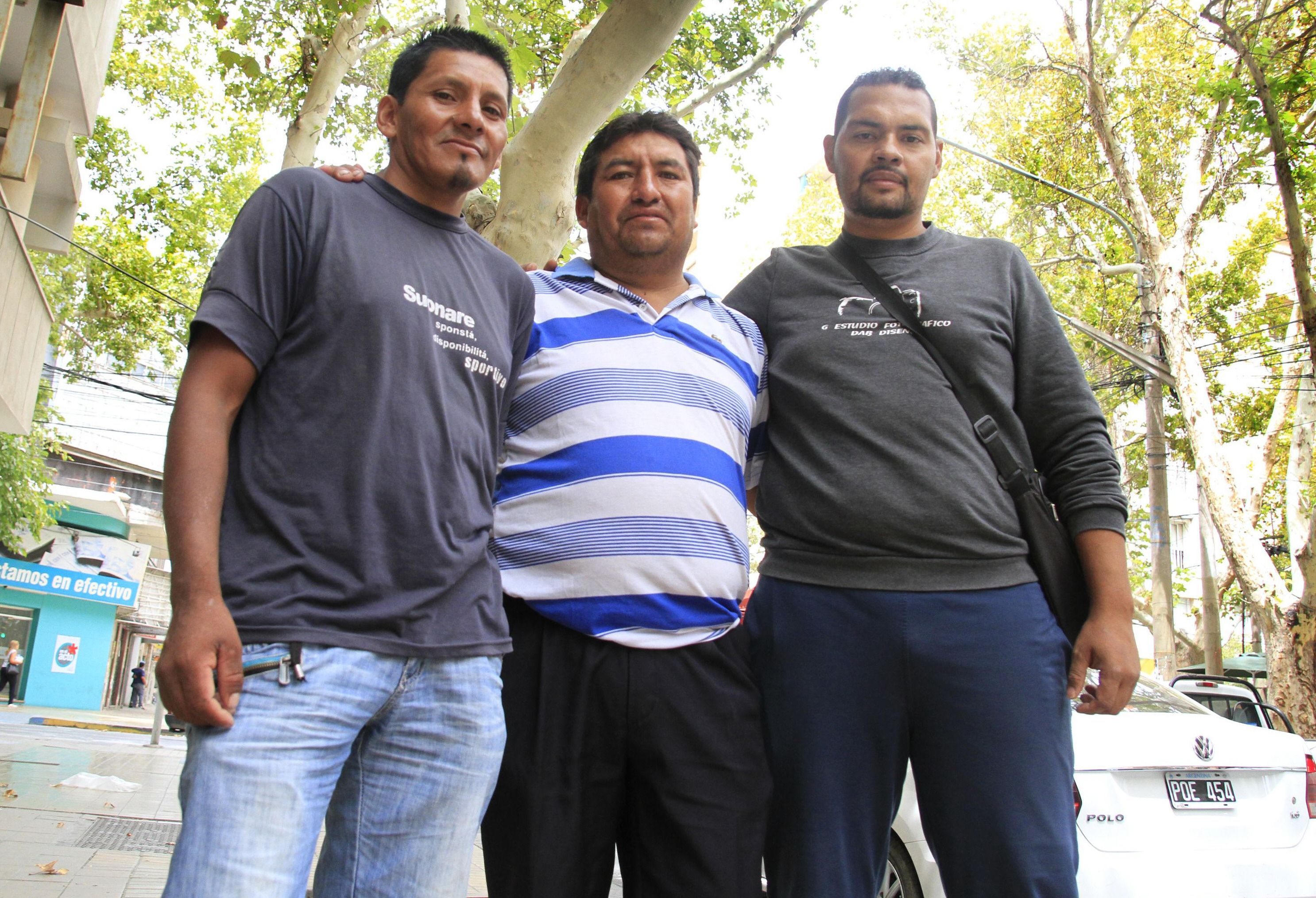Debut. Richard Colque y Jorge Aguilar (desde la derecha), nacidos en Bolivia, votarán por primera vez por los cargos de intendente y concejales en Santa Lucía, mientras que el colombiano Dennis Gómez lo hará en Ullum.