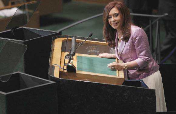 La mandataria argentina fue la primera oradora de la segunda jornada de discursos en el recinto de la ONU y pronunció un discurso de 24 minutos, donde insistió con el reclamo sobre la soberanía de las Islas Malvinas, defendió el uso de las reservas monetarias para el pago de deuda externa, y pidió reformular los organismos de crédito internacionales. Pero el punto central de la alocución fue su propuesta de pautar un tercer país imparcial donde se realice el juicio por el atentado contra la AMIA, que remarcó tiene "antecedentes internacionales" y subrayó que la Argentina "no busca culpables, sino que lo único que demanda es justicia y si alguien cometió un delito sea castigado". La mandataria igualmente aseguró que "somos un país de amplitud que garantiza la igualdad para todos los ciudadanos del mundo" y recordó que el esquema "no es una construcción caprichosa o fantasiosa" sino que "tiene antecedentes a nivel mundial de un juicio desarrollado, el de Lockerbie", por el atentado contra un avión de Pan Am sucedido el 21 de diciembre de 1988, en Escocia, que costó la vida a 270 personas.