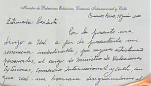 Taiana había asumido su cargo como canciller el 1 de diciembre de 2005 y en el texto de su renuncia agradeció a la mandataria "la oportunidad que me ha brindado de colaborar con Ud. en la defensa del interés nacional en el campo de la política exterior”.