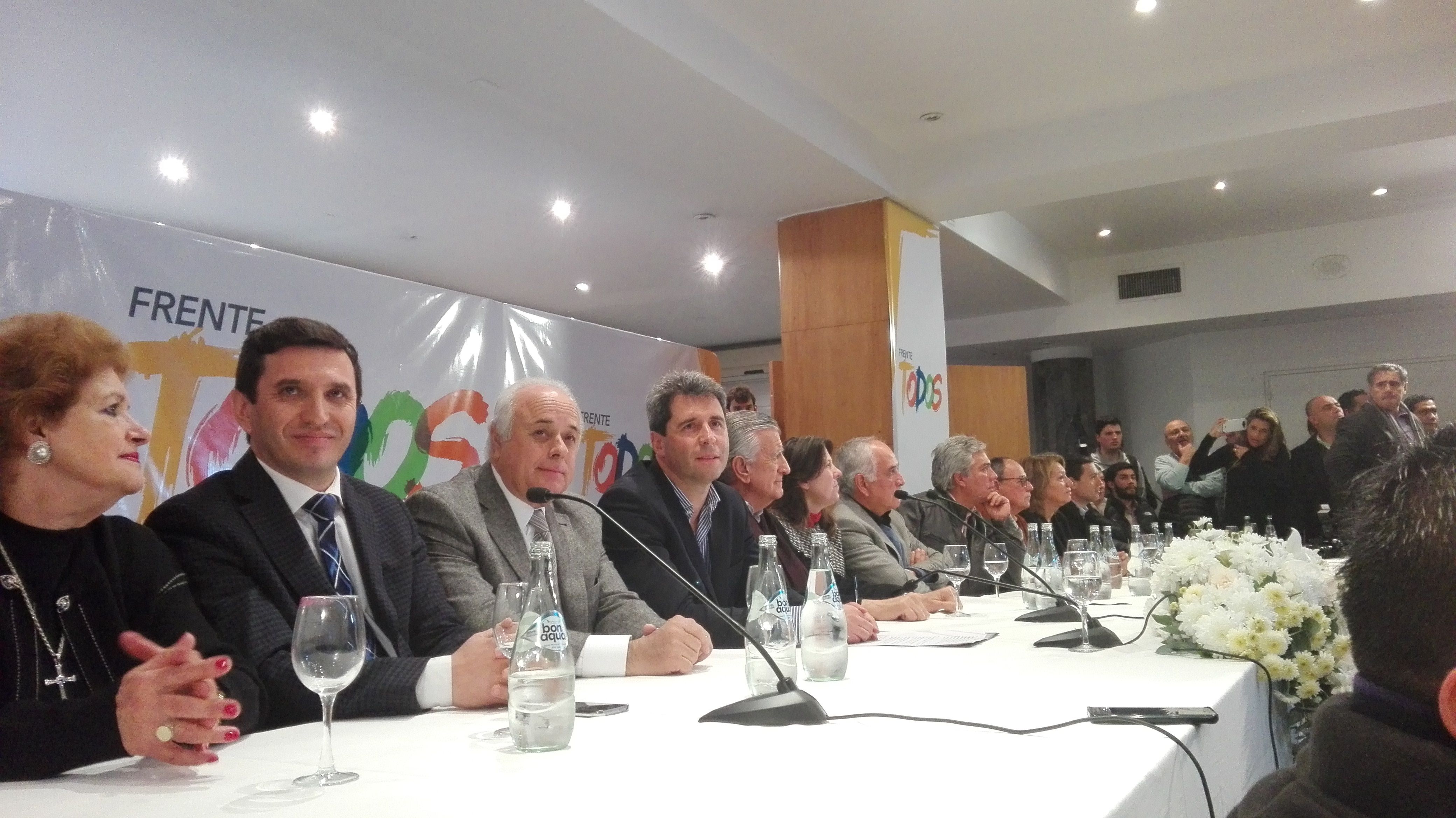 El  frente Todos tuvo su presentación oficial esta mañana en un hotel céntrico con una importante convocatoria de funcionarios, militantes y representantes de las 17 fuerzas, entre socias y adherentes.  Uñac fue el principal orador y pidió  trabajar a todos para  obtener un triunfo que se ejemplo en el país.