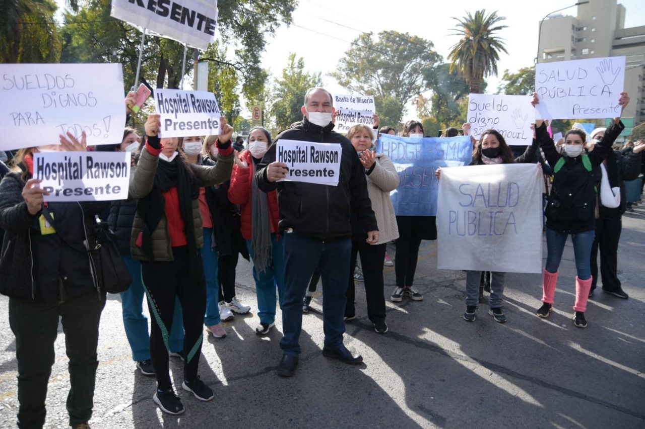 En medio de los reclamos de autoconvocados docentes y de los empleados públicos no docentes, esta mañana comenzó a manifestarse un grupo de médicos y enfermeros en las inmediaciones del Hospital Marcial Quiroga. Luego, un grupo se presentó en el Centro Cívico.
