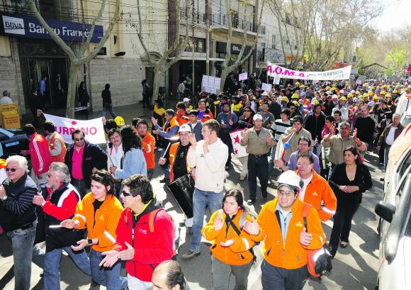 Por primera vez, desde que se instaló la minería metalífera en la provincia, ayer los obreros de minas y de la construcción, junto a trabajadores de empresas proveedoras de servicios con sus patrones protagonizaron una multitudinaria marcha en el microcentro sanjuanino en defensa de la minería.