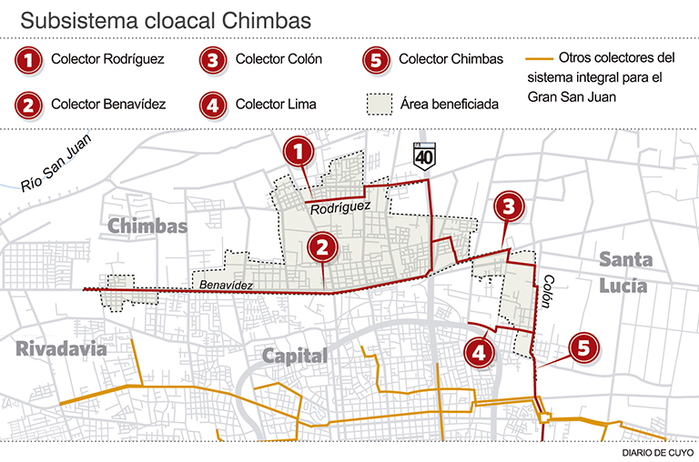 La megaobra cloacal en el Gran San Juan insumió cinco años de trabajo y finalmente estará operativa en su totalidad el lunes 5 del mes que viene. Ese día, quedará habilitado el último tramo, el llamado subsistema Chimbas, por lo que 11.605 familias, mayoritariamente de ese departamento y algunas de Santa Lucía y Rivadavia, podrán conectarse al sistema y dejar el uso de pozos negros.