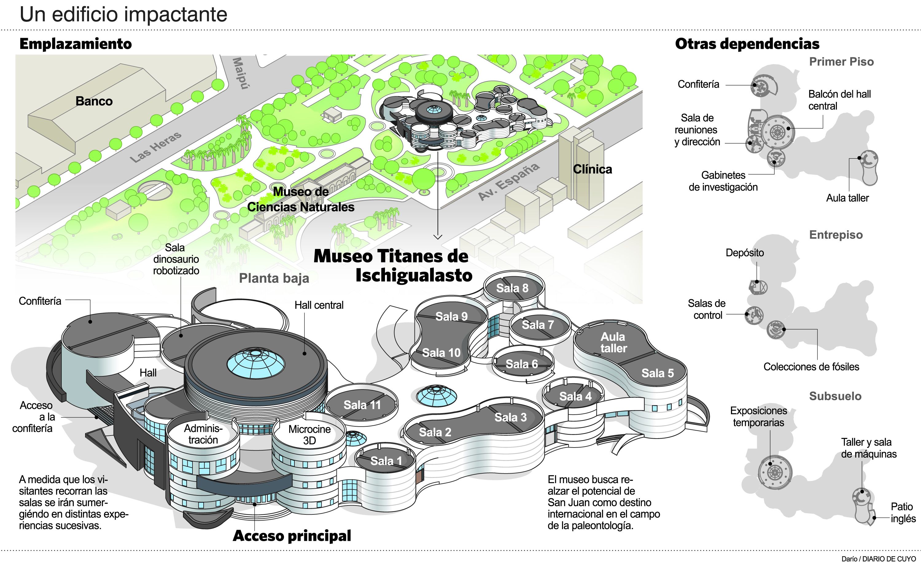 El ambicioso proyecto contempla la construcción de un edificio con características únicas para San Juan en la ex Estación Belgrano. Además, será un complemento al eje cívico, cultural y turístico que comprende al Teatro del Bicentenario, el Centro Cívico, la Legislatura y el Centro de Convenciones, a los que se suman edificios como el Museo Franklin Rawson, la Plaza del Bicentenario, el Auditorio Juan Victoria y el estadio Cerrado Aldo Cantoni.
