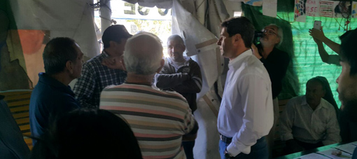 Según se pudo conocer, los asambleístas no quedaron conforme con la visita aunque agradecieron el hecho de que Uñac se haya presentado en la carpa permanente que tiene en la plaza departamental.