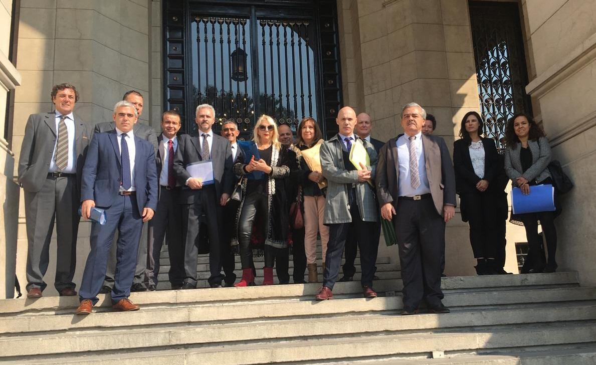Embestida. El fiscal de Estado, Jorge Alvo (al frente, a la derecha), presentó la demanda en la Corte Suprema contra la Nación junto a sus pares de otras 14 provincias.