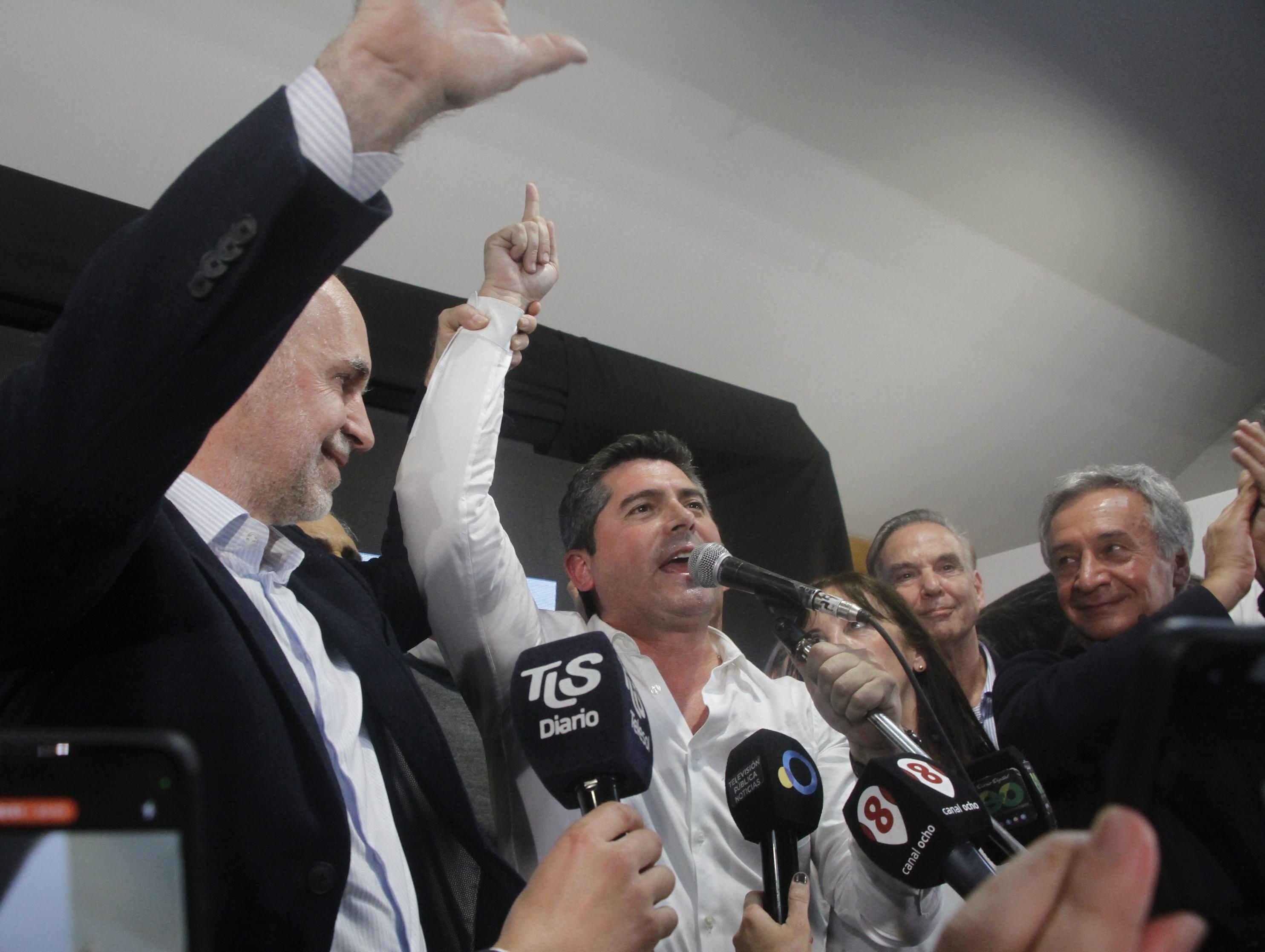 Festejo. Orrego le agradeció la victoria a su padre, a Roberto Basualdo, a Fabián Martín, a Rodríguez Larreta y a los militantes, entre otros.
