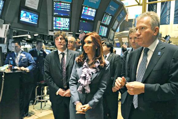 En lo que representó la agenda económica de su visita a EEUU, en su quinto día de estadía en la ciudad de Manhattan, la jefa de Estado visitó primero la Bolsa de Comercio de Nueva York y luego se reunió con hombres de negocios del Consejo de las Américas.