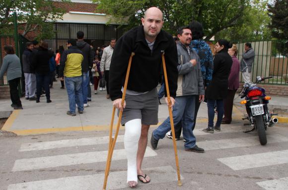 Germán, que llegó junto a su papá, contó que estaba corriendo cuando tuvo el accidente. “Tengo varias quebraduras en la tibia. De hecho aún no saben si me tienen que operar o no”, dijo el joven de Rivadavia que lleva sólo una semana de reposo, pero que quiso votar de igual manera.
