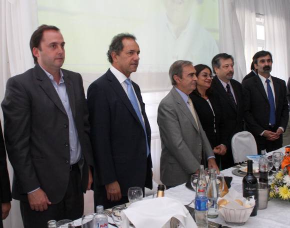 En el Complejo Esmeralda, en Sumalao, Valle Viejo, a pocos kilómetros de la capital provincial, tuvo lugar la tradicional comida con la participación de funcionarios de las provincias mineras y de los empresarios del sector. En la mesa cabecera, además de Corpacci y Scioli, estaban el secretario de Minería de la Nación, Jorge Mayoral, y el gobernador de La Rioja, Luis Beder Herrera. Por San Juan asistieron el ministro de Minería, Felipe Saavedra; el intendente de Calingasta, Robert Garcés, y el diputado Emilio Fernández, que preside la Comisión de Minería de la Cámara de Diputados de San Juan. Se esperaba la llegada del gobernador José Luis Gioja, pero fuentes de la comitiva sanjuanina dijeron que no había podido asistir por una indisposición en su garganta. Pese a que se había anunciado su presencia, tampoco estuvieron el jujeño Eduardo Fellner (quien cuenta con el respaldo de sus pares para presidir el Consejo nacional del Partido Justicialista) ni el entrerriano Sergio Urribarri, el alfil kirchnerista que se anotó en la carrera presidencial del año que viene.