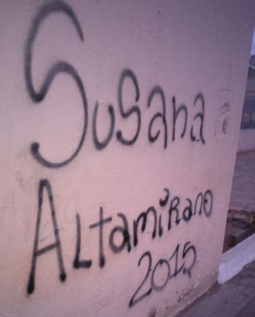 La postal despertó indignación en vecinos de 9 de Julio. La semana pasada, en paredes de particulares, kioscos, instalaciones municipales y hasta en una gruta que hizo una empresa privada, se encontraron con pintadas de color negro que dicen Susana Altamirano 2015. La mujer fue denunciada y ahora un juez debe decidir si colocarle una multa y/o mandar arrestarla.