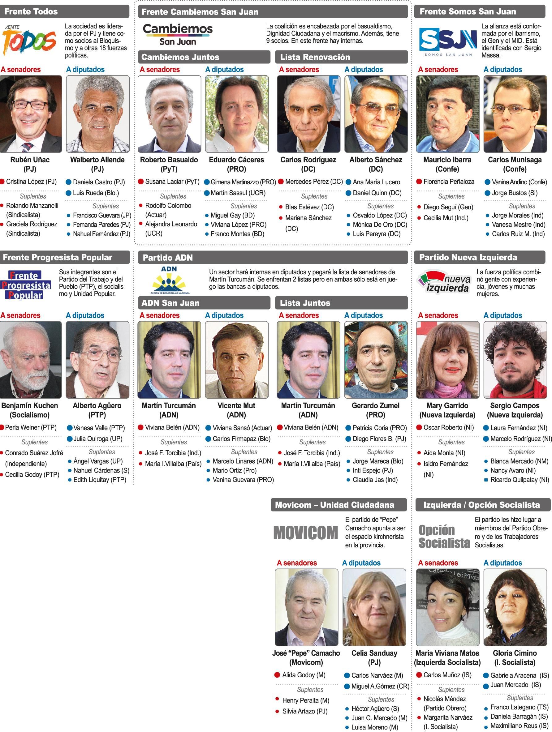 Los otros cargos nacionales en juego se encuentran bajo el ala de los líderes de Cambiemos San Juan. Roberto Basualdo buscará seguir en la Cámara alta, lo mismo que el macrista Eduardo Cáceres, pero en la Cámara baja. El primero viene desde hace años consolidado como el referente opositor con un caudal de votos casi cautivo. El segundo sí tendrá que revalidar su cuota de poder dentro del frente, donde internamente enfrenta rechazos, y ante los sanjuaninos. En el espacio habrá internas con Dignidad Ciudadana y el armado perfila seguir unido para 2019.