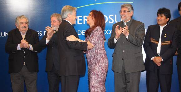 Cristina Fernández y Lula da Silva bajaron del salón Cruce de Los Andes conversando. Avanzaron por la alfombra de la planta baja conversando. Saludaron apenas con inclinaciones de cabeza y sonrisas a los demás porque estaban conversando. Entraron a la zona de la foto más esperada del día, conversando. Y mientras a los demás presidentes sudamericanos y funcionarios del Mercosur los ordenaban para hacer la tradicional "foto de familia" que dominará las imágenes hasta la próxima cumbre, ellos dos estuvieron en medio de la escena. Conversando. Fueron apenas 3 minutos de charla, pero poco después de ese trazo grueso, fue enunciado el enérgico parlamento del brasilero para los micrófonos del mundo.
