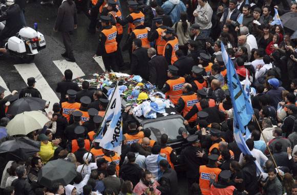 El fervor manifestado durante las horas que duró el velatorio en la Galería de los Patriotas Latinoamericanos de la Casa Rosada, continuó en las calles porteñas para brindar el último adiós al líder político, muerto el miércoles de un paro cardiorrespiratorio.
