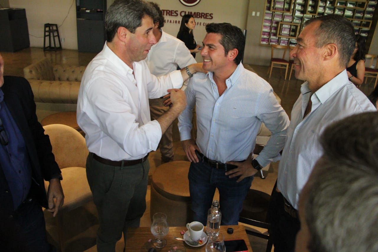Los periodistas Julio Turcumán, Walter Ríos y Victoria Olaechea tuvieron un mano a mano con Sergio Uñac, y repasaron varios temas de agenda en un ambiente relajado que lo dio este ágape en Café Tres Cumbres.