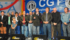 San Juan.- Durante el mediodía de este sábado, el gobernador Uñac participó del almuerzo organizado por la CGT local para celebrar el Día del Trabajador. Al hablar con los miembros de los sindicatos, el mandatario se comprometió a cuidar el trabajo de los sanjuaninos.
