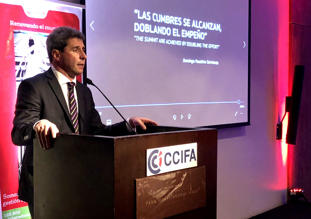 El gobernador Sergio Uñac disertó este miércoles ante referentes de la Cámara de Comercio e Industria Franco-Argentina. El encuentro se llevó a cabo en el Palacio Duhau de Buenos Aires. El sanjuanino dio a conocer los planes de desarrollo en infraestructura, energías renovables, agroalimentos, minería, vitivinicultura y de la amplia oferta cultural y deportiva que tiene la provincia, pero también realizó un profundo análisis de la situación económica y política del país.