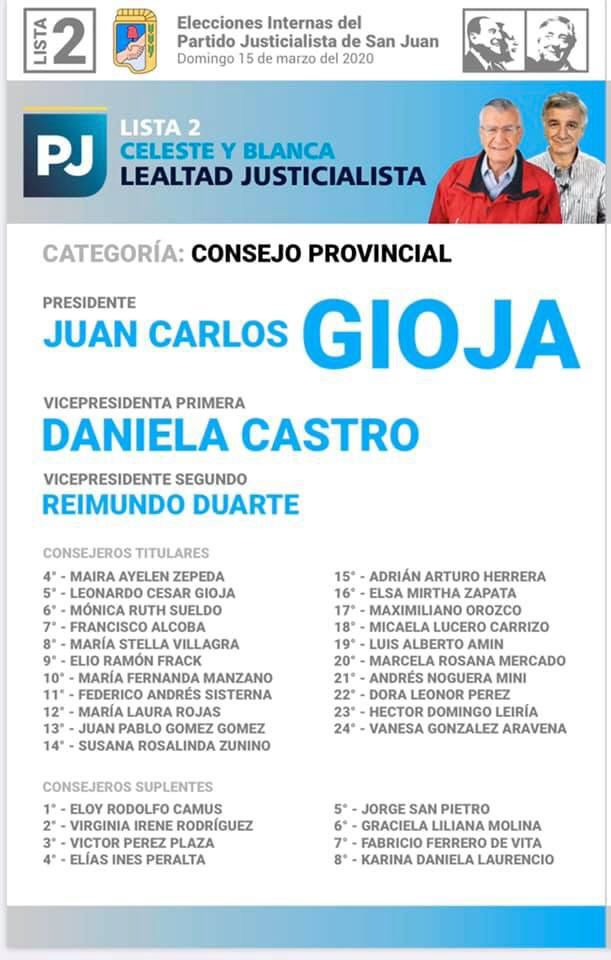 La boleta cuenta con tres categorías o secciones: la del Consejo provincial, con sus 24 integrantes, incluyendo al candidato a presidente y sus dos vice. La segunda es la que contiene a los postulantes a cada Junta Departamental, que son 22 (cuatro de Capital y los 18 distritos restantes) y los congresales provinciales. Y la tercera es la que lleva a los candidatos a congresales nacionales. El elector puede cortar y poner la sección que desee, sin que se repita la categoría, aunque fuentes partidarias señalaron que el efecto tijera es bajo.