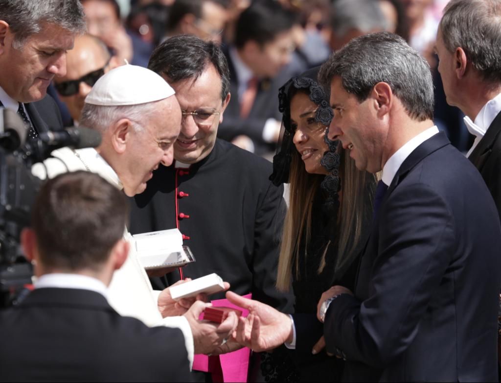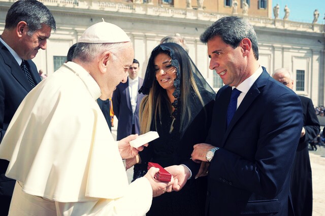 Este miércoles, en las tradicionales audiencias que tiene el Papa Francisco, el gobernador Sergio Uñac y su esposa tuvieron la oportunidad de dialogar con el Sumo Pontífice.
