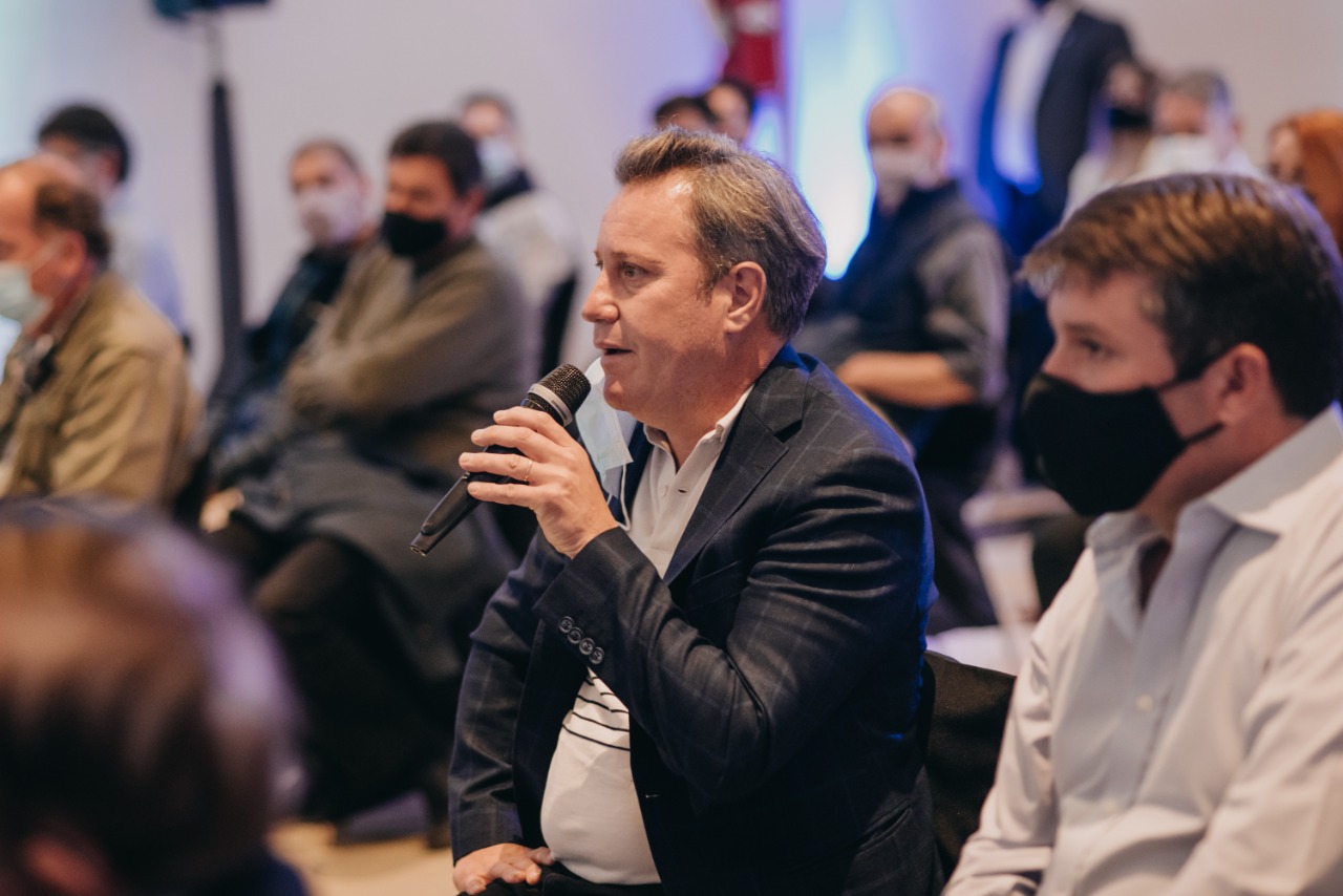 El primero de los empresarios en tomar el micrófono fue el titular de la Cámara de Comercio de Caucete, Luis César Agulles: “Para nosotros es muy importante esta convocatoria, hemos tenido momentos muy difíciles el año pasado y nos hemos sentido muy contenidos por el Estado que en esos momentos estuvo presente y aportando ese diálogo abierto que usted menciona”.