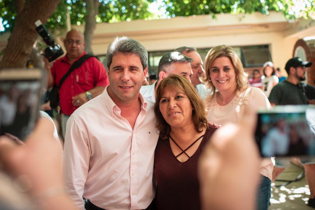 Uñac, esta mañana antes de votar se sacó fotos con la gente