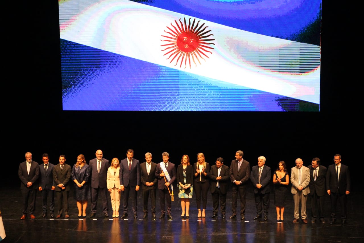El Teatro del Bicentenario fue el lugar donde el gobernador Sergio Uñac quiso ponerle un tono personal a sus palabras, casi reflexivo al final de una larga e histórica jornada en el país. A pesar que tenía un discurso armado, prefirió algo más coloquial, sin leer ningún papel