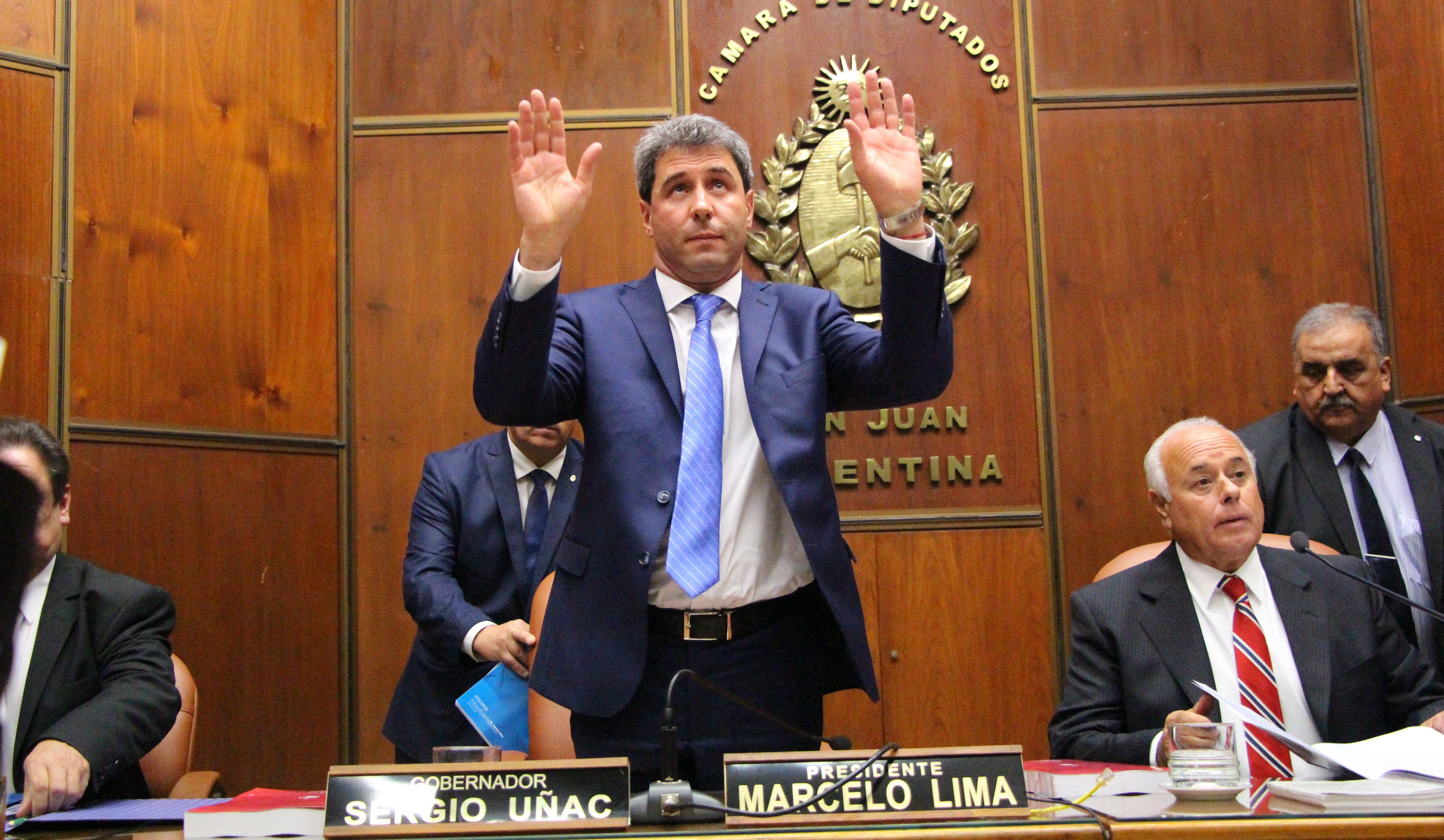 En su último mensaje como Gobernador de la gestión iniciada en el 2015, Sergio Uñac insistió ayer en su intención de construir un proyecto político e institucional que trascienda San Juan al expresar que “nuestra obligación es contribuir a un proyecto nacional defendiendo los intereses de la provincia”. Fue el día después de haber obtenido el 55,7% de los votos en las elecciones primarias, que lo posiciona en inmejorables condiciones para un segundo mandato, un resultado aún mejor que el cosechado en las internas de 4 años atrás, en el marco de la apertura del período de sesiones ordinarias de la Cámara de Diputados.